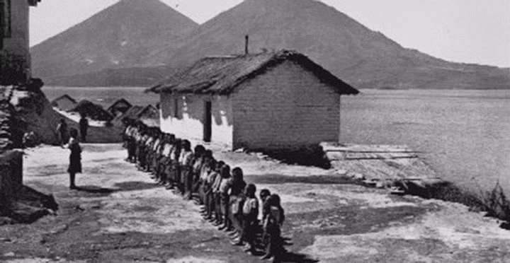 También pudieron observar una clase, pues como es hospedaron en la escuela fueron despertados por un grupo de niños indígenas, ataviados exactamente igual que sus padres y con un pañuelo rojo en la cabeza que parecía que había sido heredado por generaciones; los niños entraron al salón y se pusieron a trabajar en su libro hasta que llegó el profesor a tomar lista. Luego de pasar lista, los niños continuaron trabajando en su libro sin moverse por tres horas, mientras el profesor conversaba con los acompañantes ladinos de los Maudslay, a quienes confesó que ni el hablaba el lenguaje de sus alumnos, ni ellos hablaban español. En cuanto a las niñas, a ellas se le dio el día libre porque su clase estaba ocupada con las pertenencias de los viajeros.