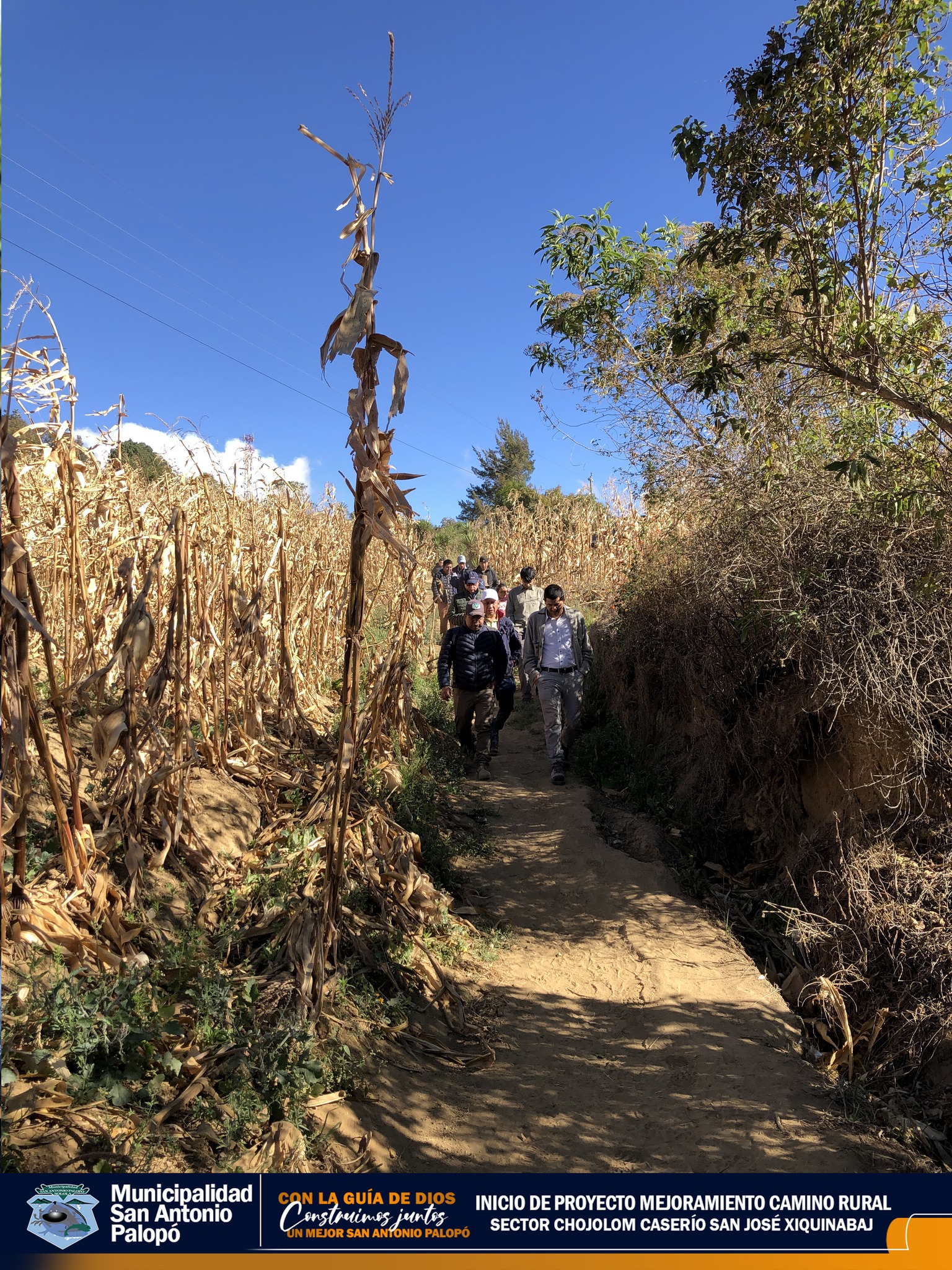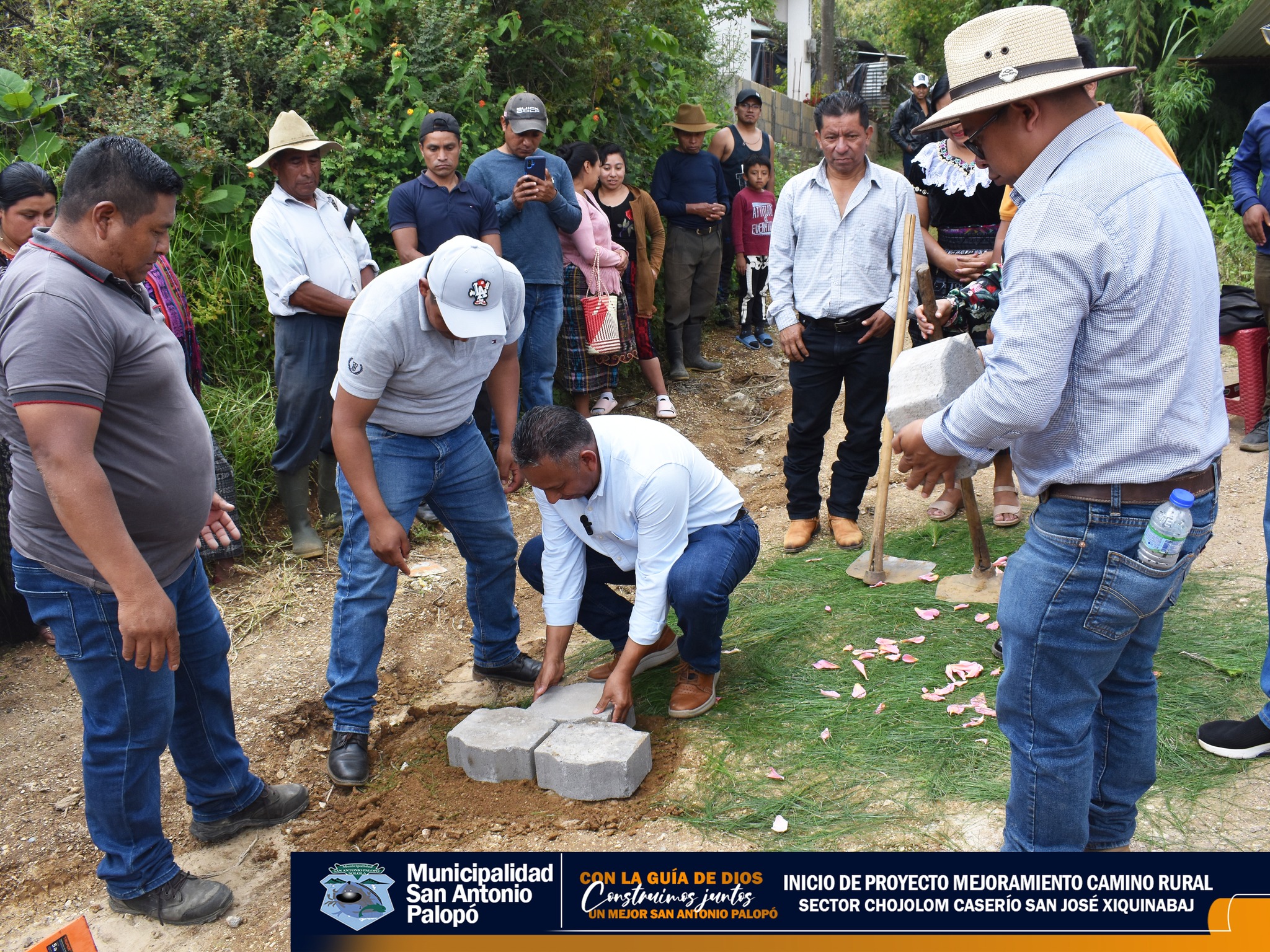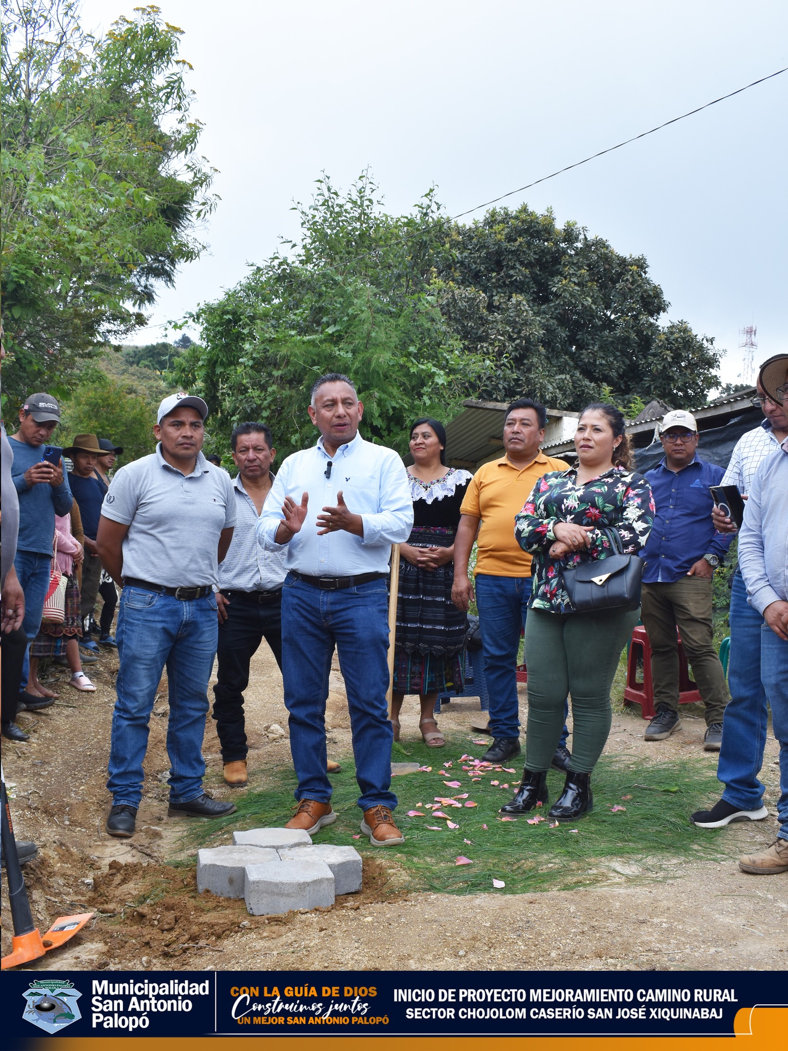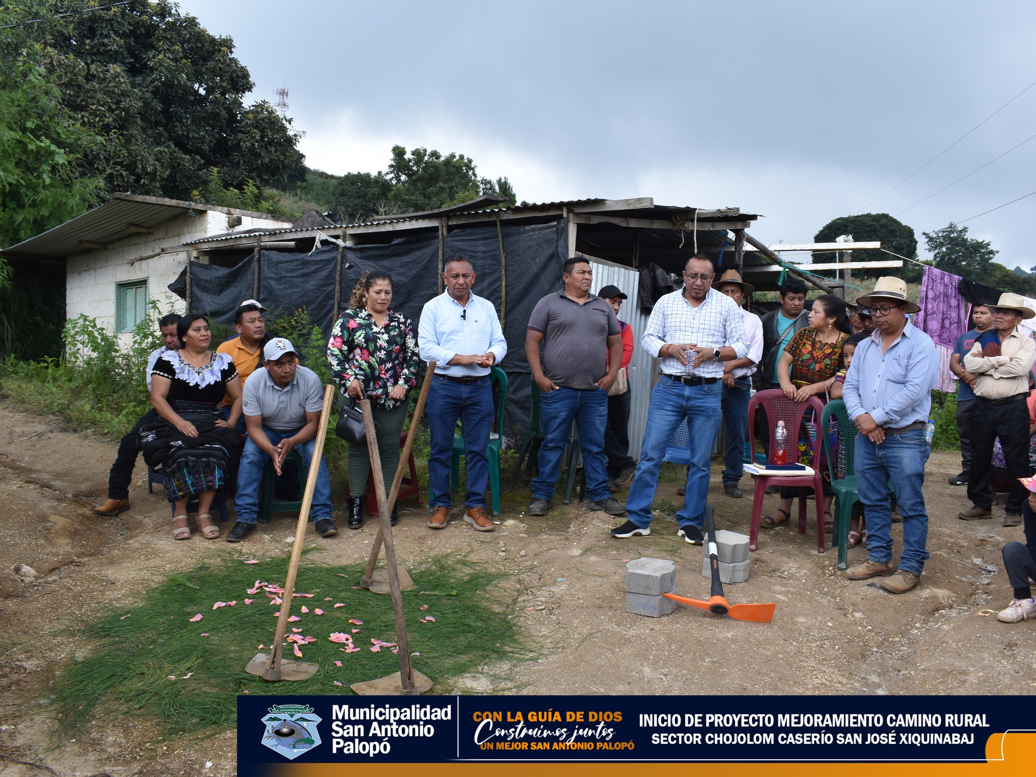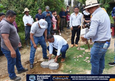 El Señor Alcalde acompañado del Concejo Municipal 2024-2028, autoridades comunitarias, vecinos y empresa constructora dieron inicio al proyecto «MEJORAMIENTO CAMINO RURAL SECTOR CHOJOLOM CASERÍO SAN JOSÉ XIQUINABAJ»