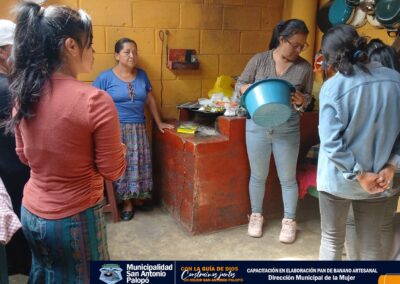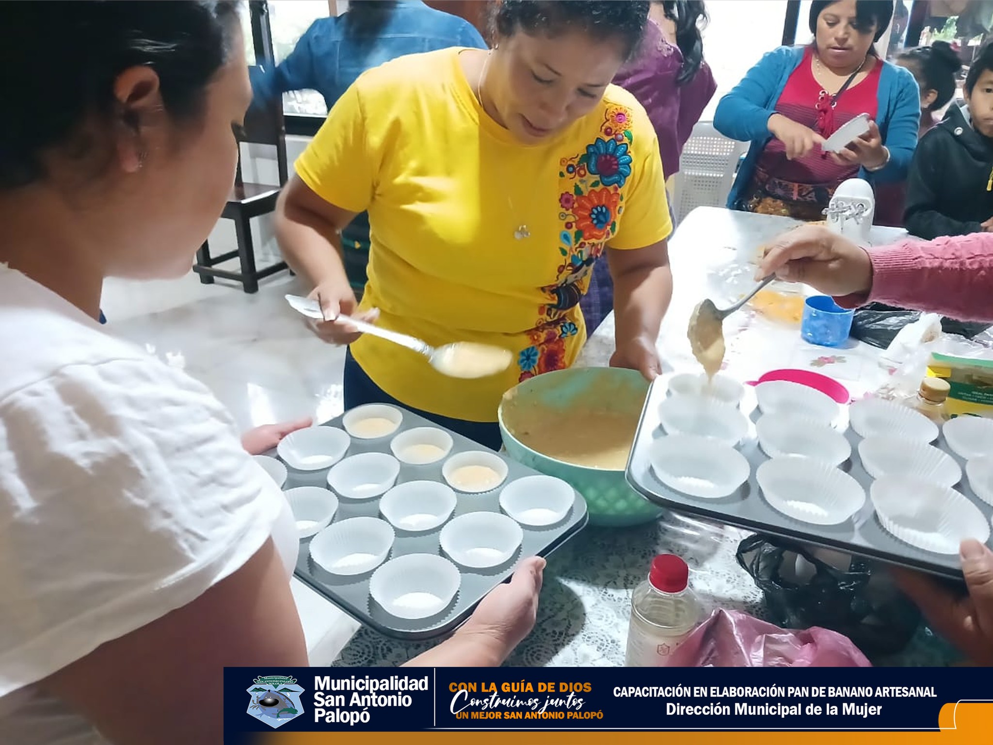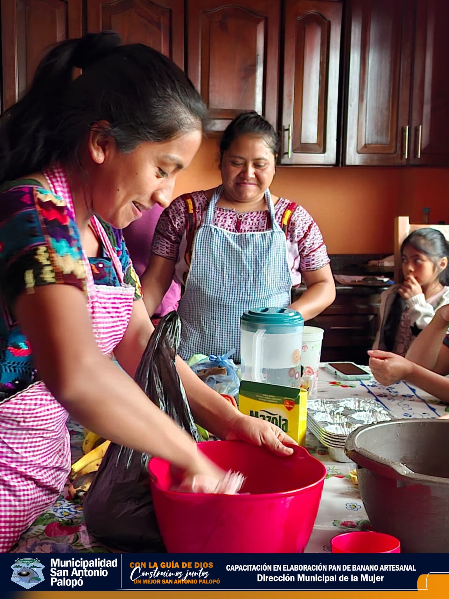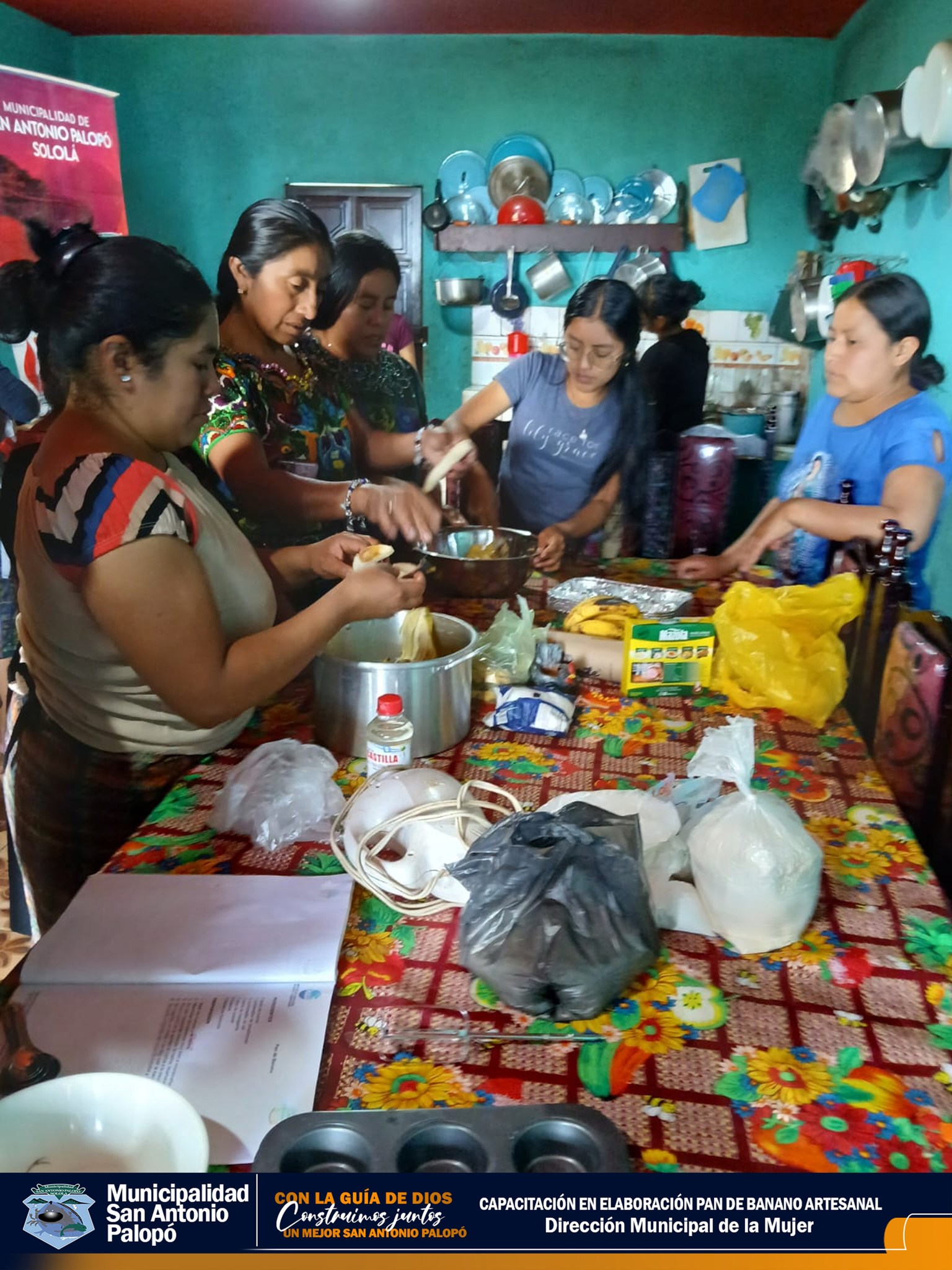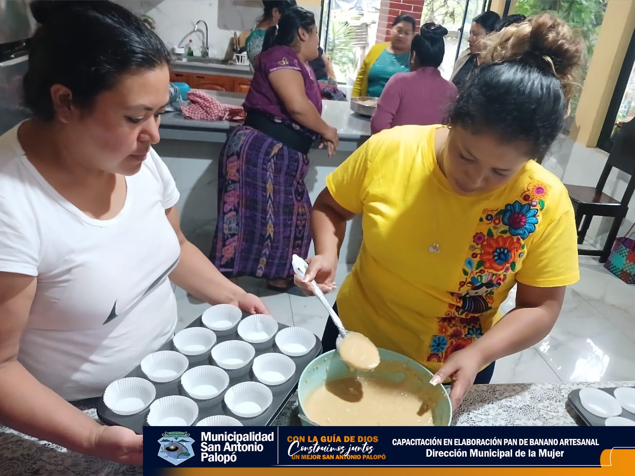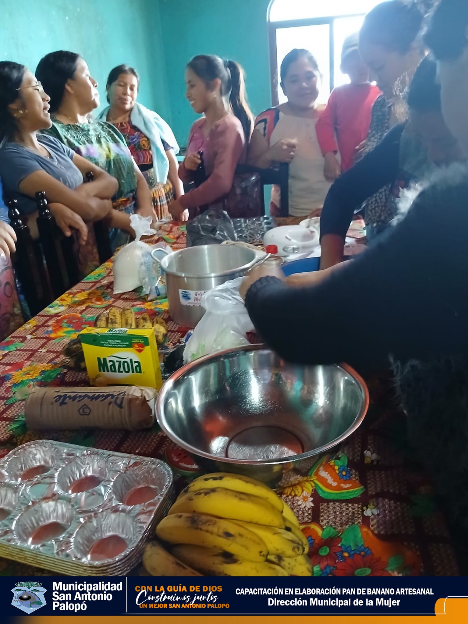 En el marco de las iniciativas impulsadas por el Señor Alcalde mediante la Dirección Municipal de la Mujer (DMM) para fortalecer la autonomía económica de las mujeres, se llevaron a cabo distintas jornadas de capacitación en la elaboración de pan de banano artesanal, dirigida a grupos de mujeres del municipio.