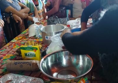 En dicha actividad las participantes aprendieron a preparar pan de banano de manera sencilla, utilizando ingredientes accesibles y de bajo costo disponibles en la mayoría de los hogares o tiendas locales. La receta fue adaptada para facilitar su reproducción en casa promoviendo así la posibilidad de emprender pequeños negocios familiares o generar ingresos complementarios.